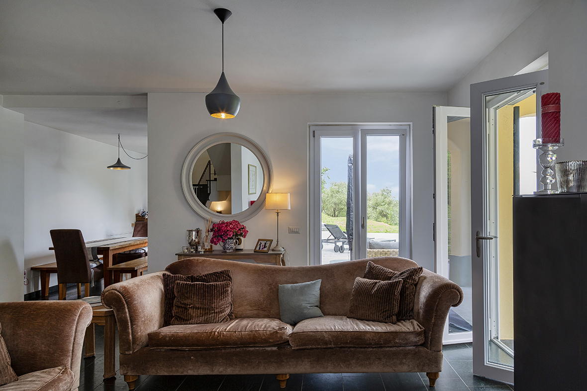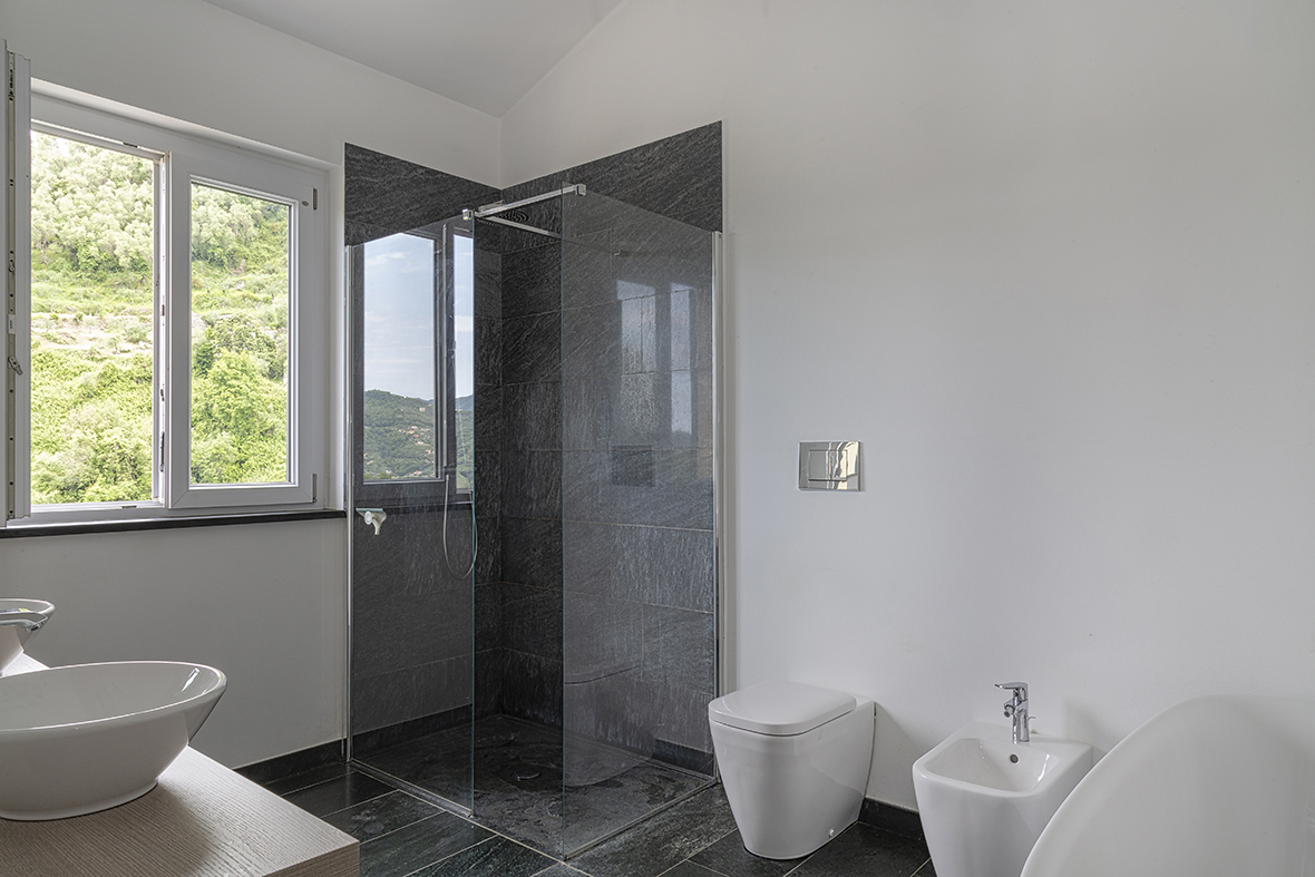 This well presented recently built Ligurian-style property offers stylish open plan living on the ground floor, consisting of a generous lounge area with log burning fire, a large kitchen and separate dining area.