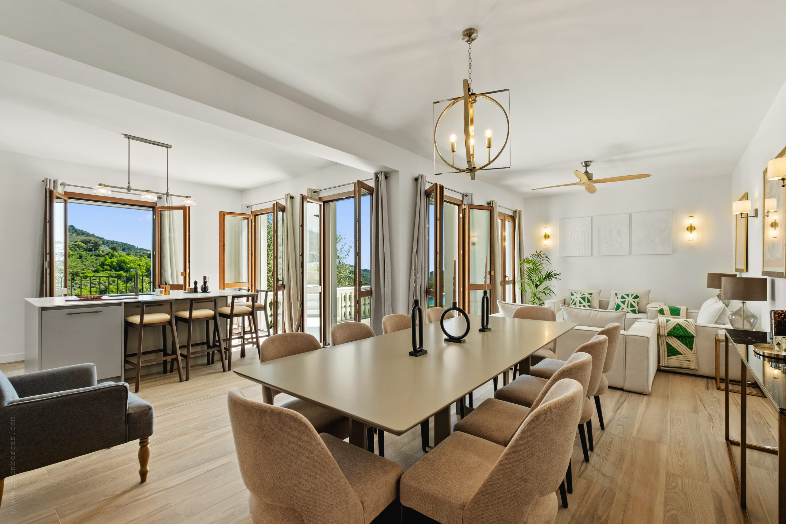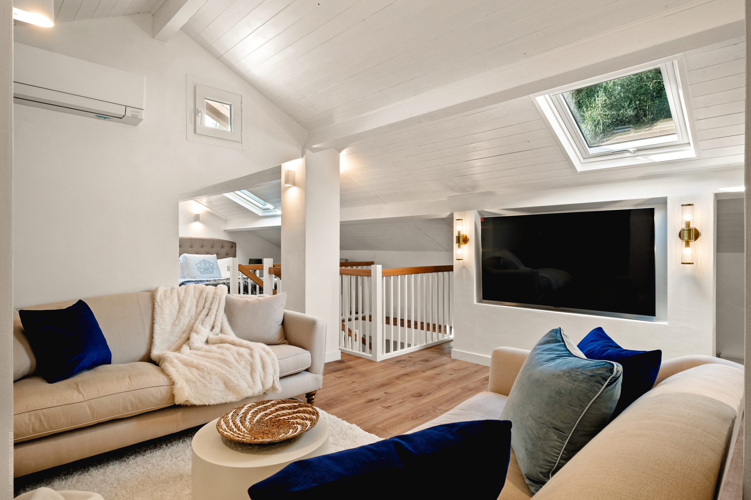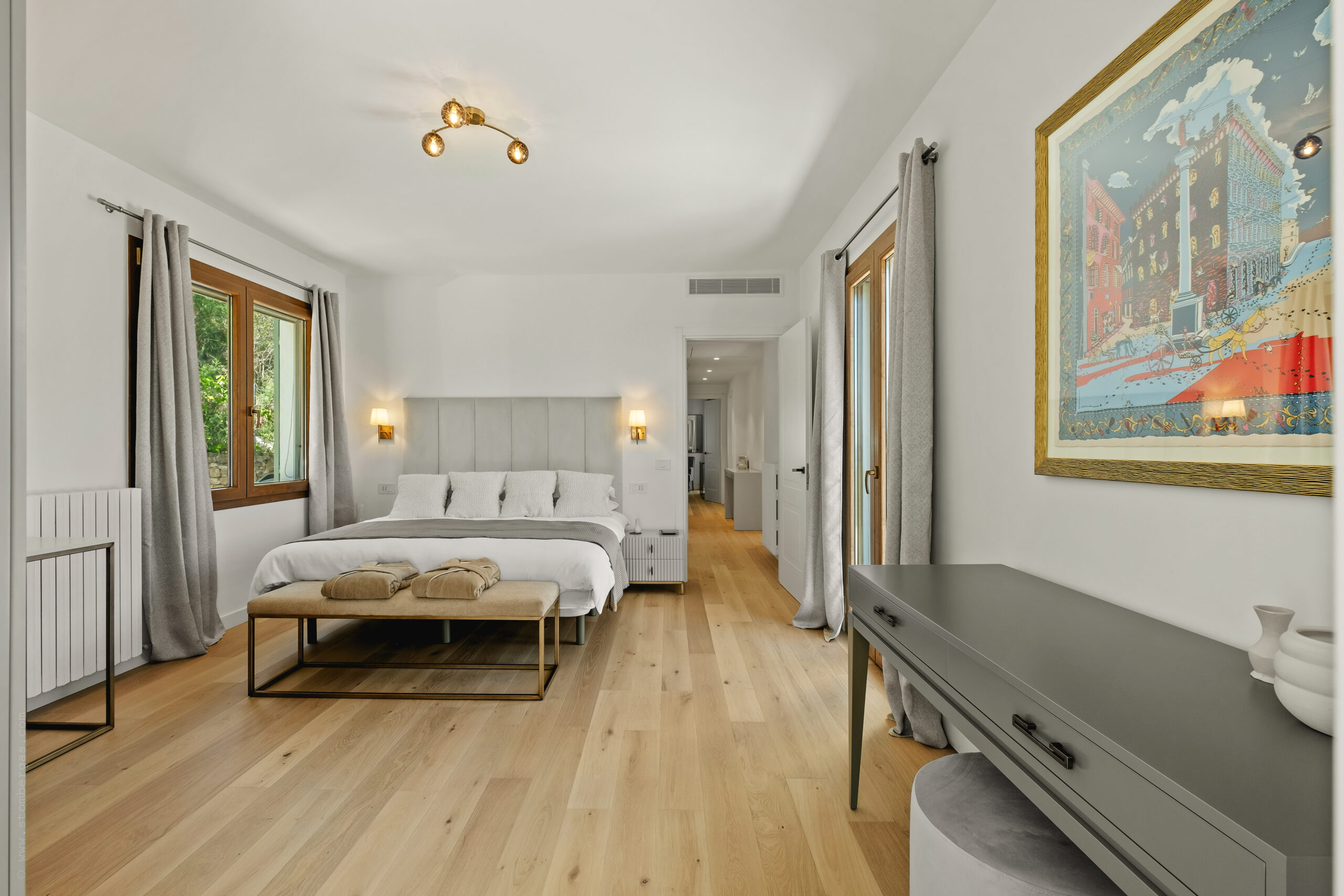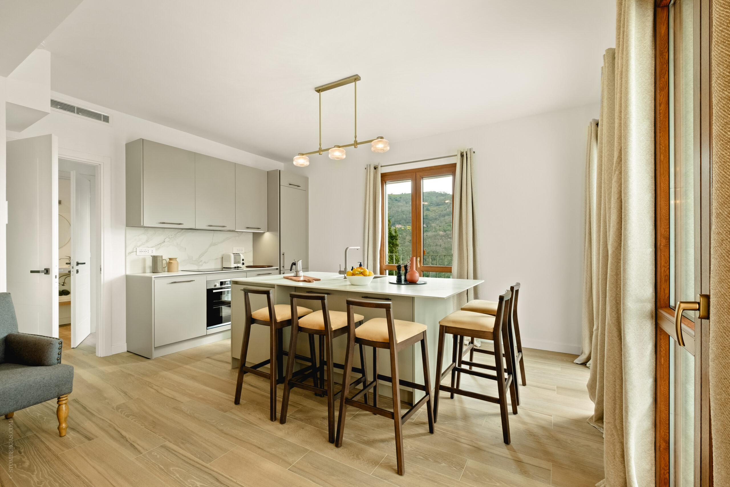 Al primo piano si trova la zona notte, composta da una suite padronale con bagno privato e terrazza panoramica, due camere con bagno in condivisione e una terza camera con bagno en-suite.